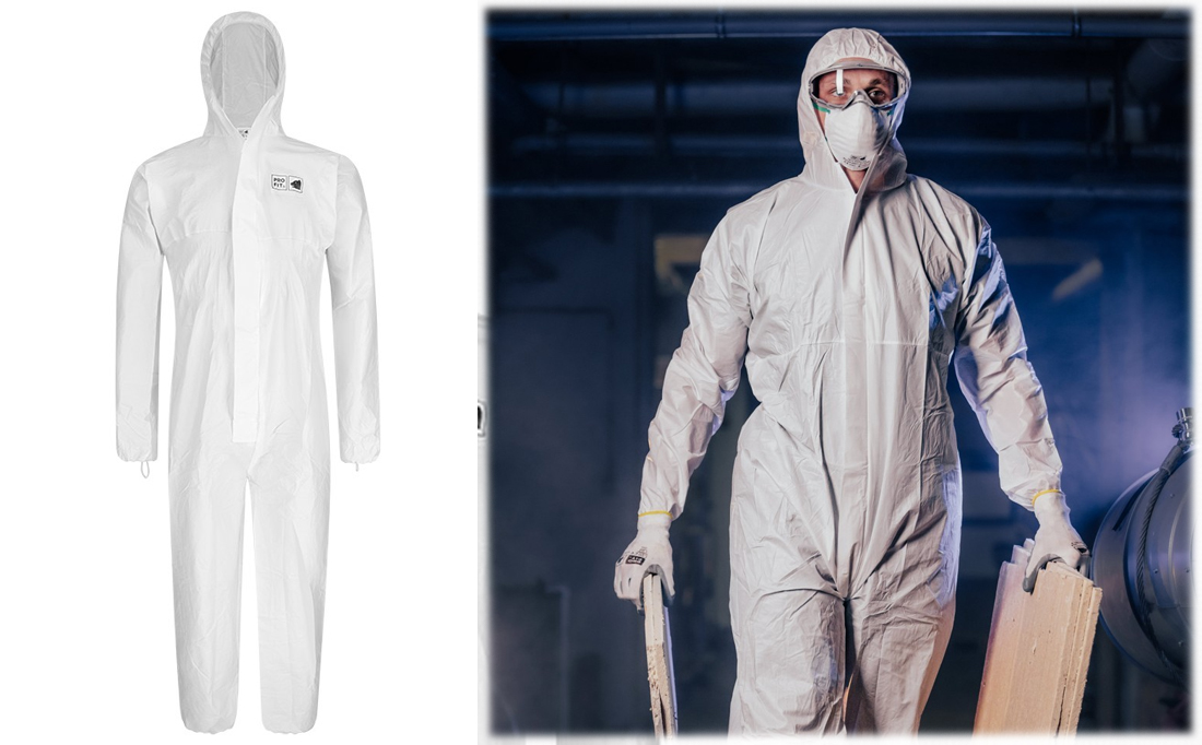 Schutzoverall aus mikroporöser Filmmembran nach Schutzklasse Kat. III, Typ 5B + 6B