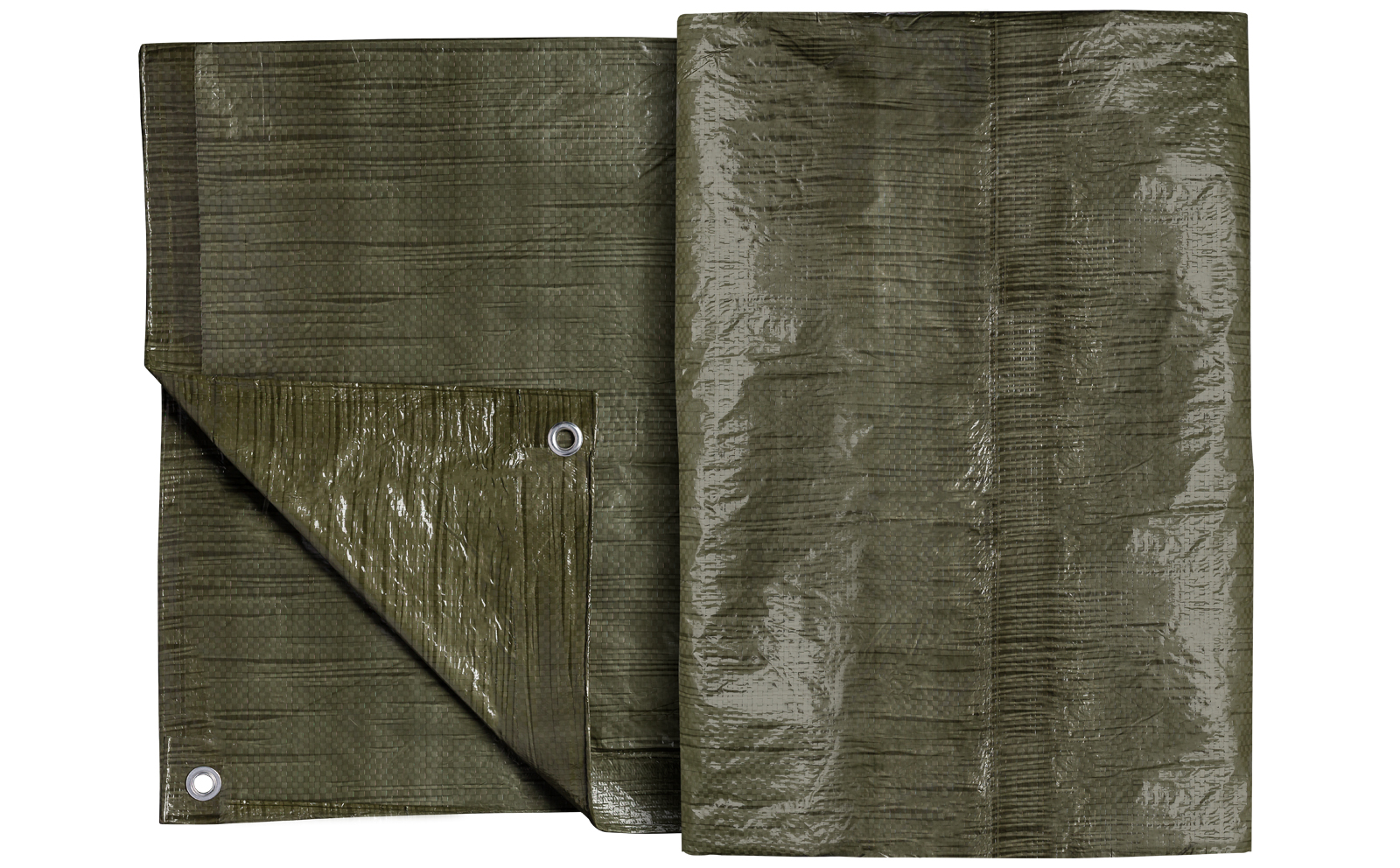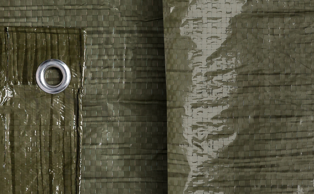 Stablie Gewebeplane mit Ösen circa 75g pro Quadratmeter.